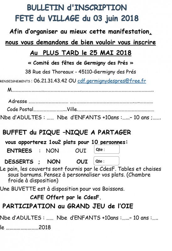 FETE du VILLAGE 03 JUIN 2018